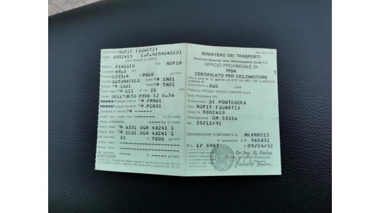 PIAGGIO QUARTZ 50 Immatricolato 1994, 70cc. *** Scooter completamente rigenerato *** Lavori eseguiti : Motore da 70cc MHR, ingranaggi primari MALOSSI rapp. 16 37, trasmissione originale rivista, carburatore dell'orto 17.5, aria automatica, terminale Sito plus, carter accensione Zip 5p HK1, sospensione Anteriore e posteriore BITUBO (Gas), batteria. Con: Specchietti originali disponibili ( non presenti in foto). ************* I NOSTRI SERVIZI : -Acquisto diretto con pagamento immediato -conto vendita -vendita auto, moto e scooter usati e garantiti -vendita veicoli d'epoca -permuta auto con moto e viceversa -noleggio breve e lungo termine -finanziamenti personalizzati (rata costante,mini e maxi rate, leasing) -assistenza post-vendita con società di garanzie e officine partner -assicurazioni -consulenze e stime per acquisti tra privati VISITA il nostro sito internet: automotousateroma.it oppure scarica la nostra App: automotousateroma dall' Apple store o Play store per restare aggiornato sui nostri ultimi arrivi. VIENI A TROVARCI PER VEDERE DAL VIVO QUESTO VEICOLO : Auto Moto Usate Roma s.r.l.Via Appia Nuova 23, 00047, Marino (RM) (adiacente Sorelle Ramonda) ************* HAI UNA PERMUTA? compila il form sull'App o nel nostro sito automotousateroma.it oppure inviaci foto e descrizione (modello anno km motore ...) al nostro numero whatsapp : Cell. 351-4646876 o Whats. 366-6562866 Fisso 06-7215841 e-mail : info@automotousateroma.it ************* La Auto Moto Usate Roma Srl declina ogni responsabilità per eventuali involontarie incongruenze che non rappresentano in alcun modo un impegno contrattuale e invitano i clienti a verificare sempre dal vivo la correttezza dei dati che potrebbero non coincidere con l’effettivo equipaggiamento del veicolo spesso dovuto alla incompatibilità dei dati trasmessi sulle varie piattaforme web.