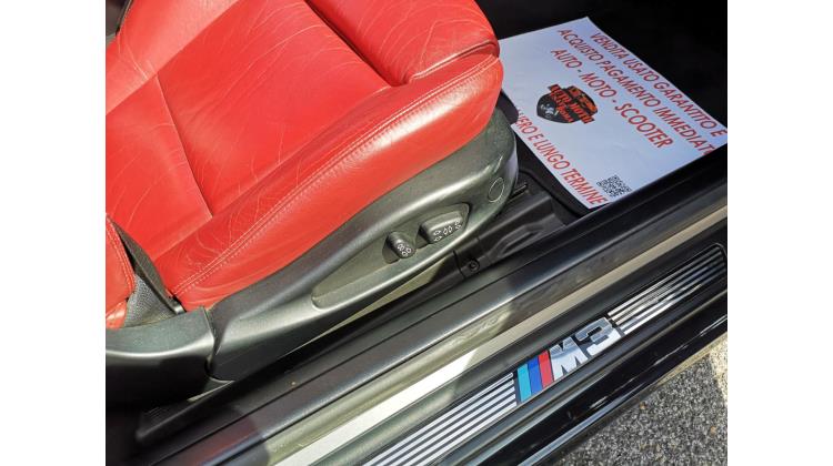 BMW Serie 3 M3 CABRIO Immatricolato 2002, 3246cc, 343Cv/252Kw, 134.000Km, 3porte/4posti, Euro2. Rimangono sempre esclusi i costi : -del passaggio di proprietà pari ad euro 1.350,00 -messa su strada pari ad euro 500,00 che include l'attivazione della garanzia di 12 mesi completa, all'occorrenza controlli e/o tagliando completo preconsegna (olio,filtro olio, filtro aria e tutti i componenti necessari al ripristino ivi compresi kit distribuzione), kit ruota di scorta o kit gonfiaggio, 12 mesi di garanzia estendibili a 24/36mesi in base al veicolo e copre i componenti non soggetti ad usura (dettagli in sede). Di serie: Motore 6 cilindri in linea, cambio automatico 4 rapporti, trazione posteriore, ABS, Assetto sportivo M, Hard-top + frangivento, vetri e specchietti elettrici, volante sportivo M in pelle con comandi, sedili in pelle rossa, Cruise control, Autoradio con lettore CD, Climatizzatore automatico, fendinebbia, Regolazione elettrica sedili anteriori memoria lato guida, sedili anteriori riscaldabili, Isofix, sensori di parcheggio posteriori, cerchi in lega da 19â€. I NOSTRI SERVIZI : -Acquisto diretto con pagamento immediato -conto vendita -vendita auto, moto e scooter usati e garantiti -vendita veicoli d'epoca -permuta auto con moto e viceversa -noleggio breve e lungo termine -finanziamenti personalizzati (rata costante,mini e maxi rate, leasing) -assistenza post-vendita con società di garanzie e officine partner -assicurazioni -consulenze e stime per acquisti tra privati VISITA il nostro sito internet: automotousateroma.it oppure scarica la nostra App: automotousateroma dall' Apple store o Play store per restare aggiornato sui nostri ultimi arrivi. VIENI A TROVARCI PER VEDERE DAL VIVO QUESTO VEICOLO : Auto Moto Usate Roma s.r.l.Via Appia Nuova 23, 00047, Marino (RM) (adiacente Sorelle Ramonda) ************* HAI UNA PERMUTA? compila il form sull'App o nel nostro sito automotousateroma.it oppure inviaci foto e descrizione (modello anno km motore ...) al nostro numero whatsapp : Cell. 366-6562866 o 351-4646876 Fisso 06-7215841 e-mail : info@automotousateroma.it ************* La Auto Moto Usate Roma Srl declina ogni responsabilità per eventuali involontarie incongruenze che non rappresentano in alcun modo un impegno contrattuale e invitano i clienti a verificare sempre dal vivo la correttezza dei dati che potrebbero non coincidere con l’effettivo equipaggiamento del veicolo spesso dovuto alla incompatibilità dei dati trasmessi sulle varie piattaforme web.